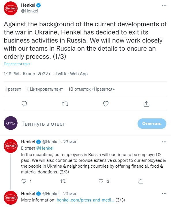Производитель бытовой химии Henkel заявил о прекращении деятельности в России
