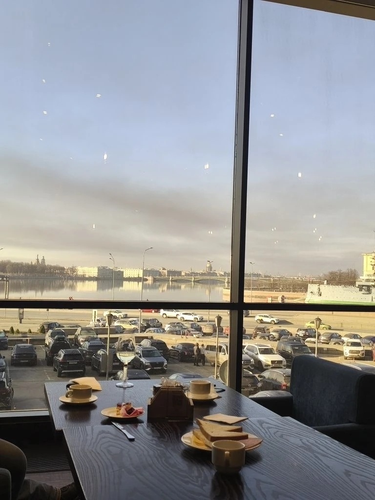 Наш быт во время этой поездки был также неотделим от петербургской атмосферы. Наша гостиница располагалась очень удачно – в непосредственной близости от одной из многочисленных рек города, а возможно, и прямо на её берегу. И это стало еще одним подарком. Утром, просыпаясь, и выглядывая в окно, мы не видели хаоса мегаполиса, а наблюдали совершенно иное: спокойное, медленное течение воды, отражающей высокие, строгие фасады зданий.
